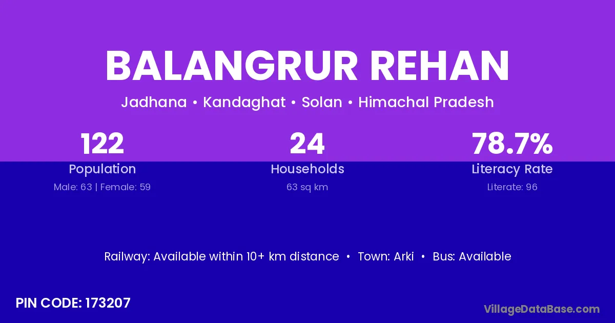 Arki is the nearest town to Balangrur Rehan village for major economic activities