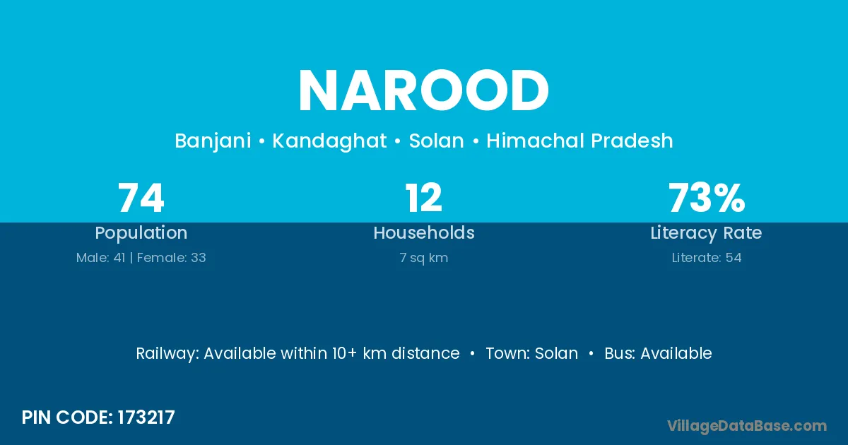 Solan is the nearest town to Narood village for major economic activities