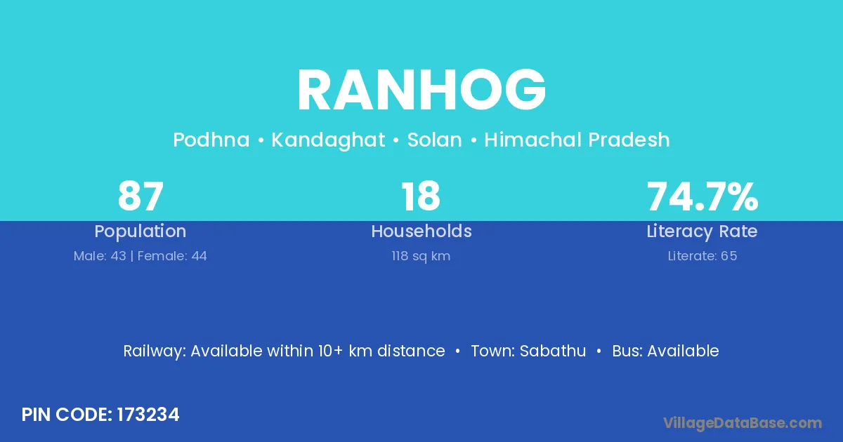 Sabathu is the nearest town to Ranhog village for major economic activities