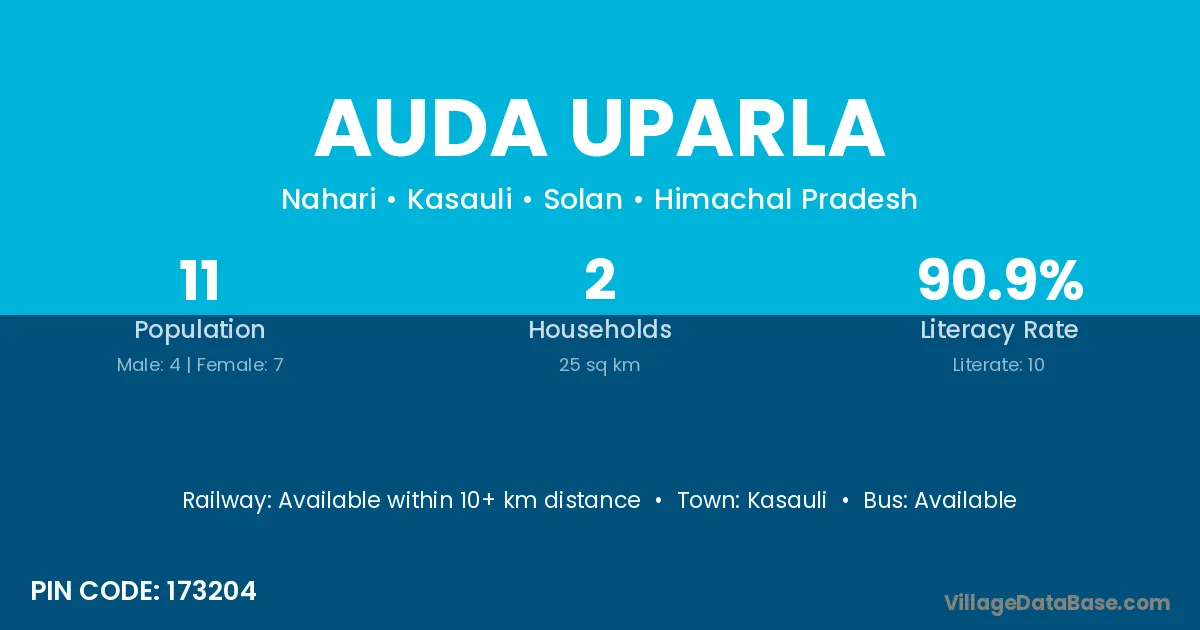 Kasauli is the nearest town to Auda Uparla village for major economic activities