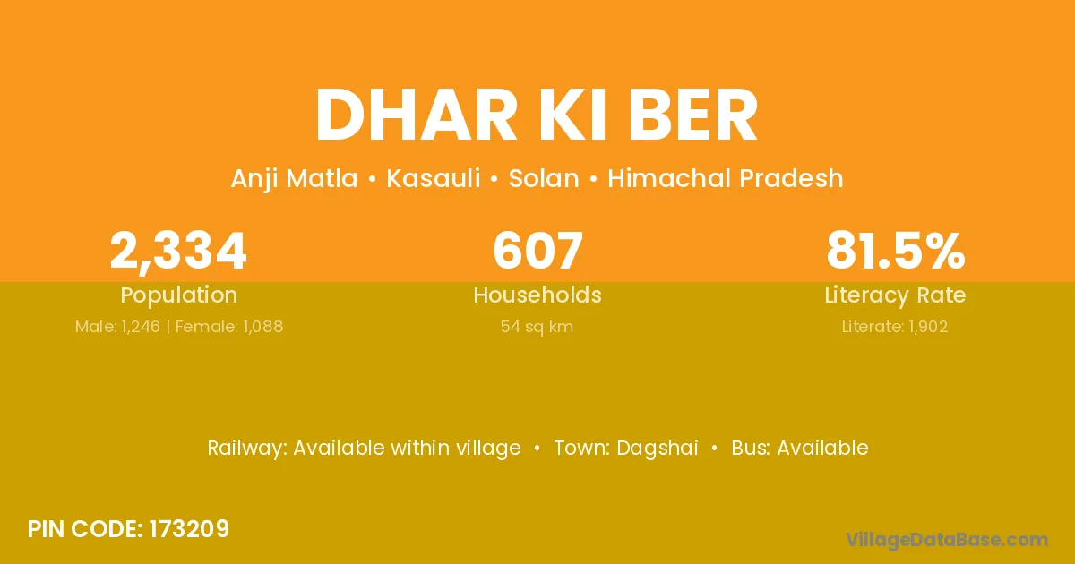According to Census 2011 information, the village code of Dhar Ki Ber village is 173209.