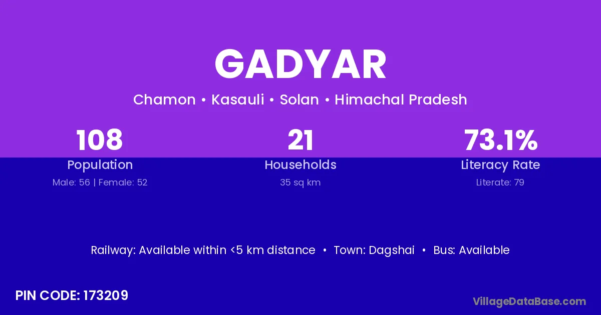 Dagshai is the nearest town to Gadyar village for major economic activities