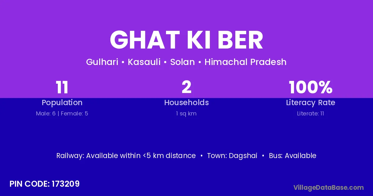 According to Census 2011 information, the village code of Ghat Ki Ber village is 173209.