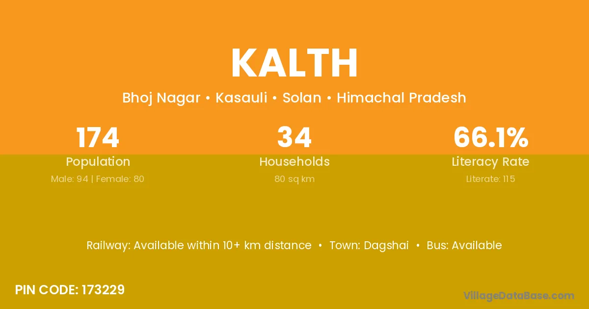 Dagshai is the nearest town to Kalth village for major economic activities