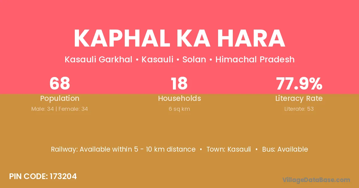 Kaphal Ka Hara village has a total population of 68 people, of which 34 are males and 34 are females.