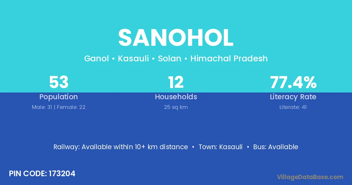 Sanohol village has a total population of 53 people, of which 31 are males and 22 are females.