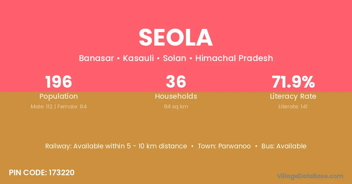 Parwanoo is the nearest town to Seola village for major economic activities