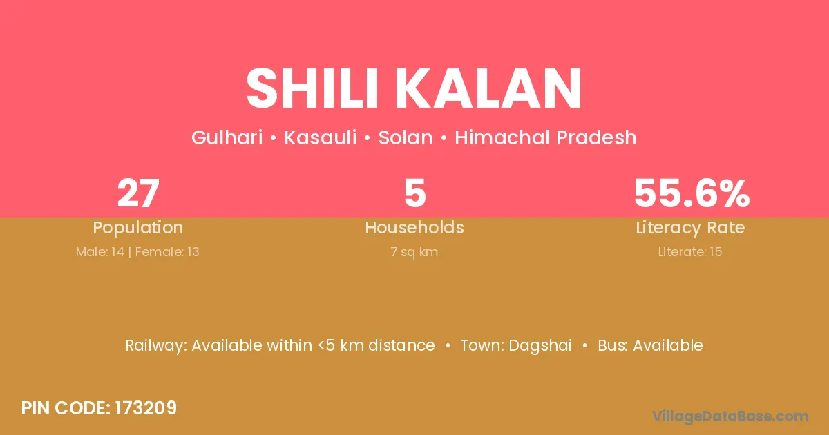 Shili Kalan village has a total population of 27 people, of which 14 are males and 13 are females.