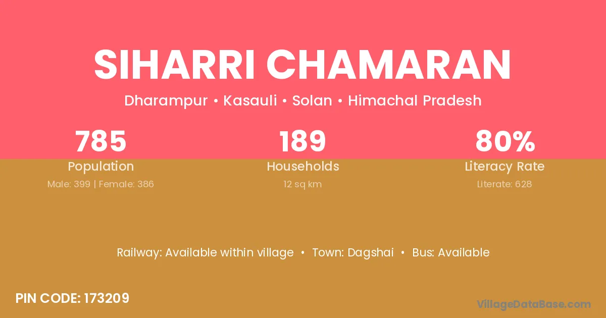 Dagshai is the nearest town to Siharri Chamaran village for major economic activities
