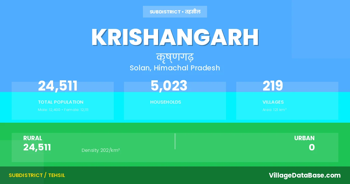 Krishangarh is a town and Tehsil in the Solan district of the Himachal Pradesh. In India, a Tehsil is a subdivision of a district responsible for the administration and revenue collection of a specific area within the district. Tehsils play a crucial role in the local governance structure, contributing significantly to the development and administration of their communities.