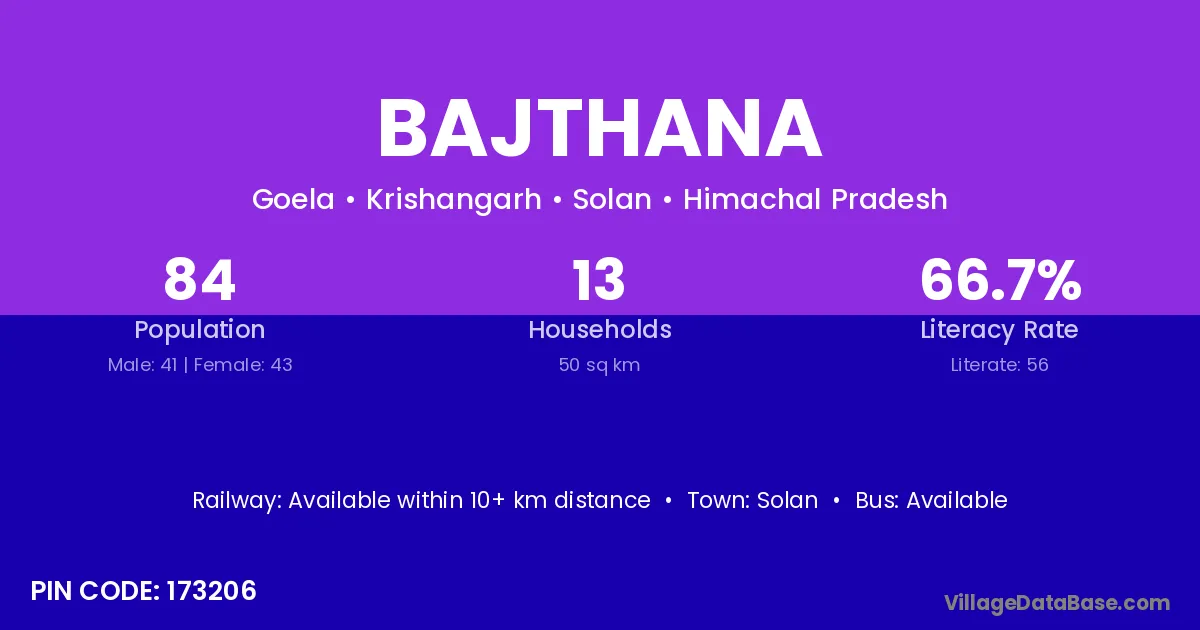 Solan is the nearest town to Bajthana village for major economic activities