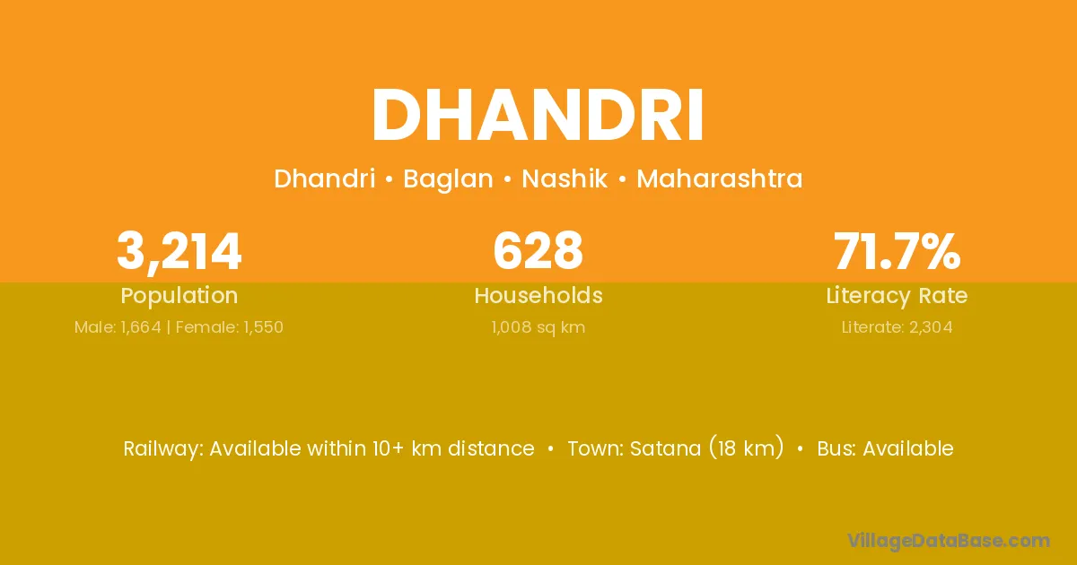 Dhandri village has a total population of 225 people, of which 113 are males and 112 are females.