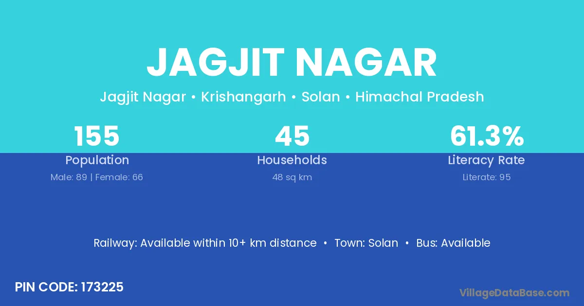 Solan is the nearest town to Jagjit Nagar village for major economic activities