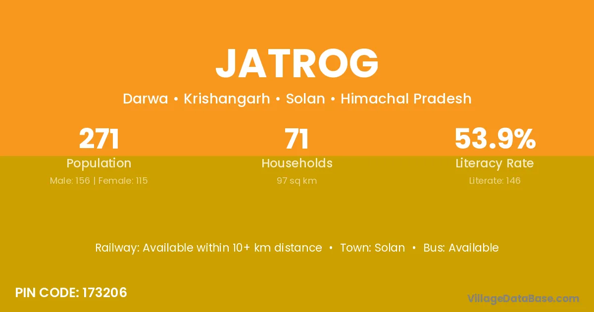 Solan is the nearest town to Jatrog village for major economic activities
