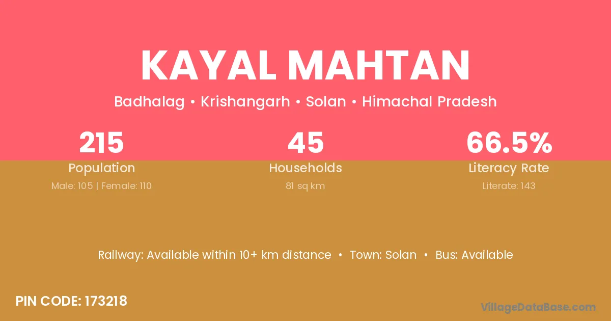According to Census 2011 information, the village code of Kayal Mahtan village is 173218.
