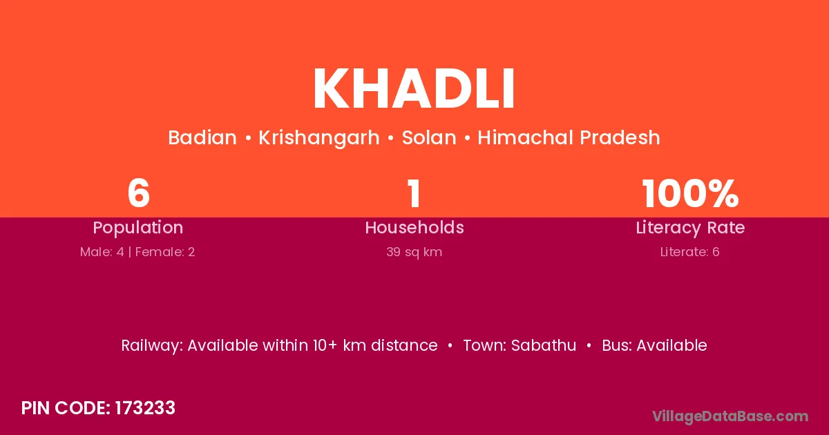 Sabathu is the nearest town to Khadli village for major economic activities