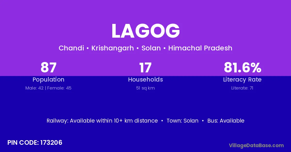 Solan is the nearest town to Lagog village for major economic activities