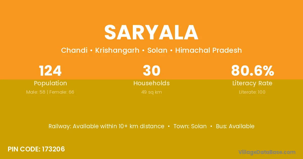 Solan is the nearest town to Saryala village for major economic activities