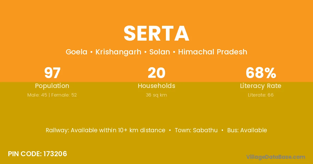 Sabathu is the nearest town to Serta village for major economic activities