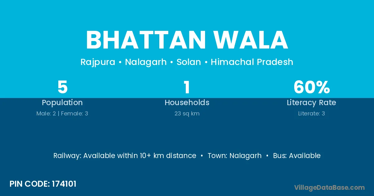 Nalagarh is the nearest town to Bhattan Wala village for major economic activities