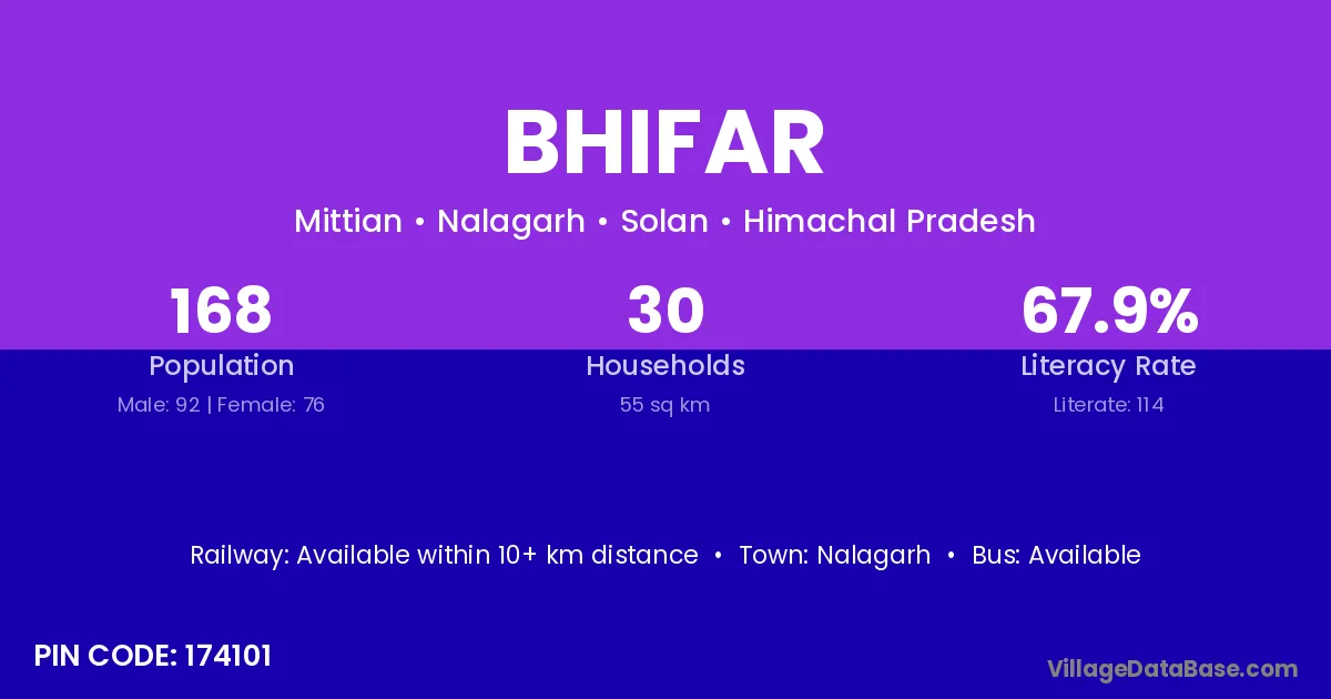 Nalagarh is the nearest town to Bhifar village for major economic activities