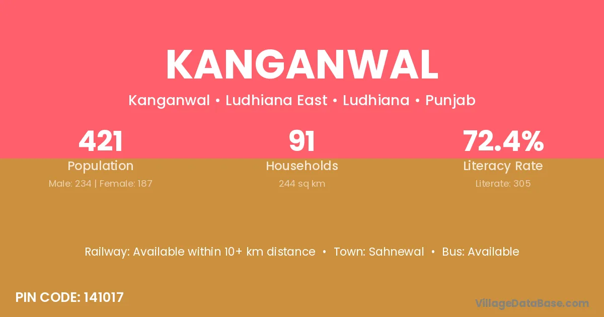 Kanganwal village has a total population of 464 people, of which 247 are males and 217 are females.