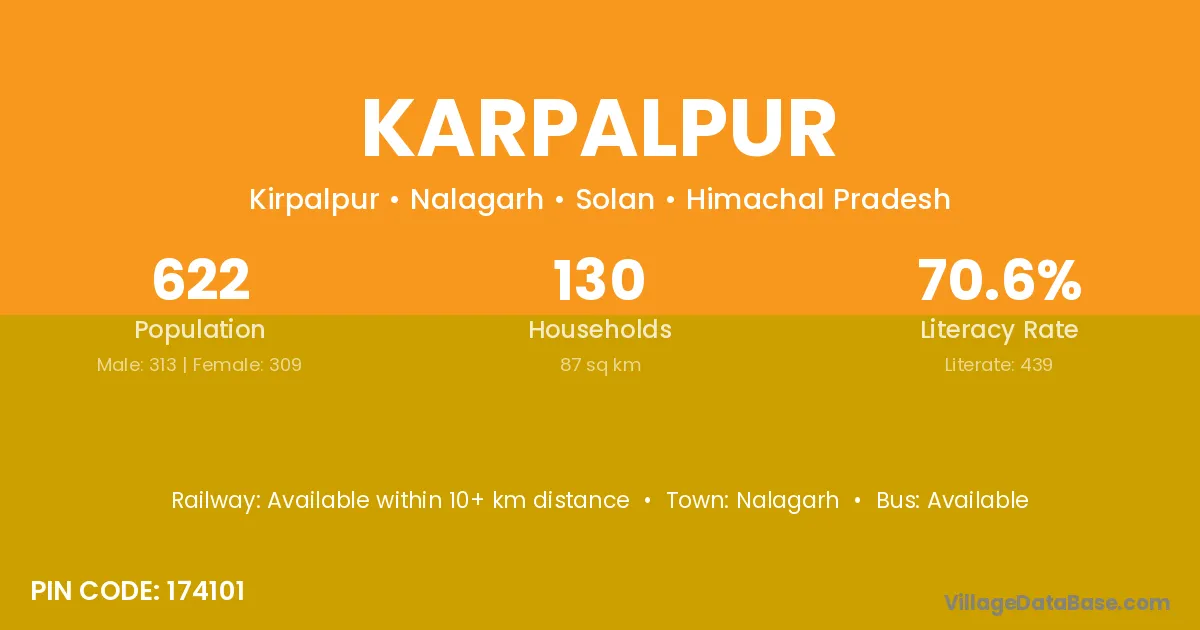 Nalagarh is the nearest town to Karpalpur village for major economic activities