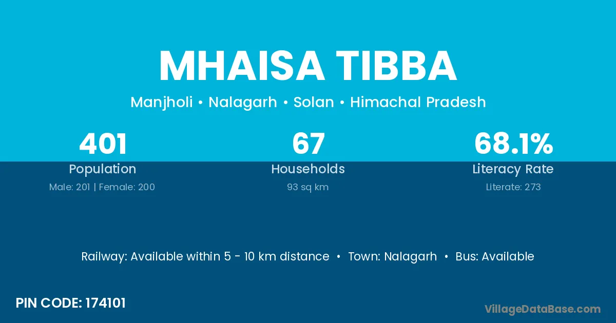 Nalagarh is the nearest town to Mhaisa Tibba village for major economic activities