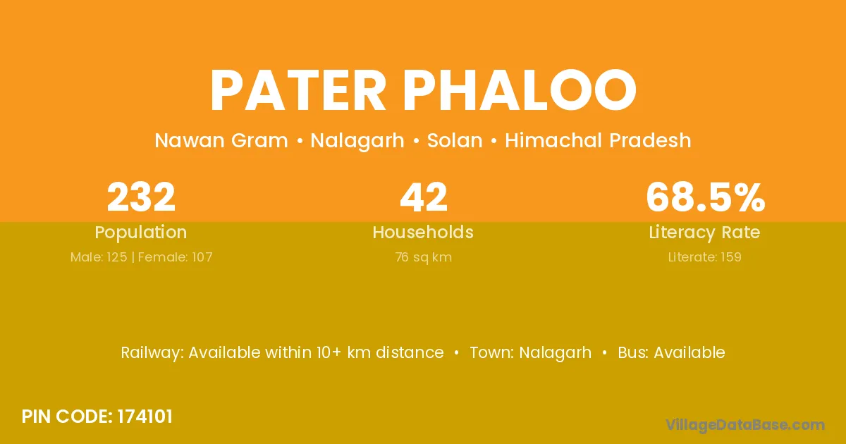 Nalagarh is the nearest town to Pater Phaloo village for major economic activities