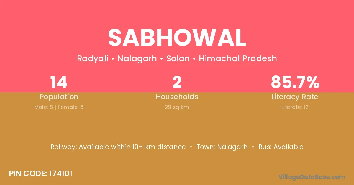 Sabhowal village has a total population of 14 people, of which 8 are males and 6 are females.