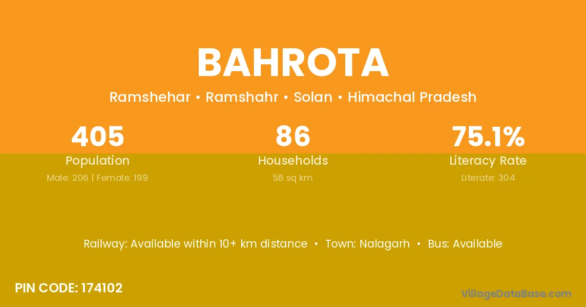 Nalagarh is the nearest town to Bahrota village for major economic activities