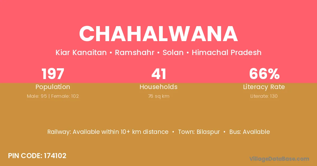 Chahalwana village has a total population of 197 people, of which 95 are males and 102 are females.