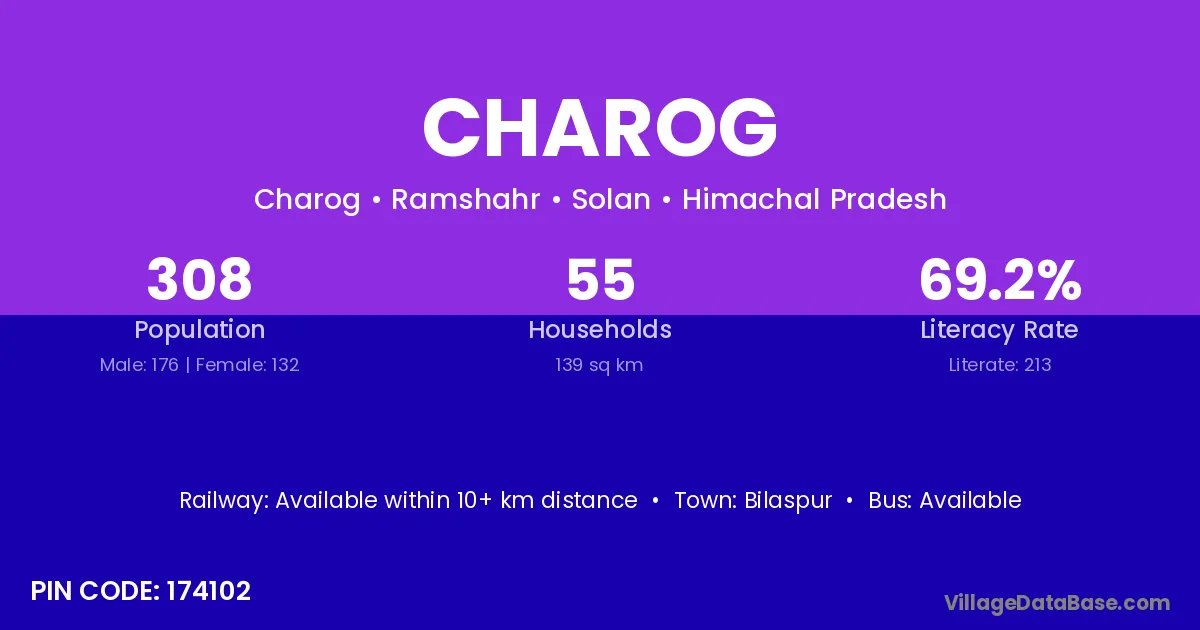 Charog village has a total population of 308 people, of which 176 are males and 132 are females.
