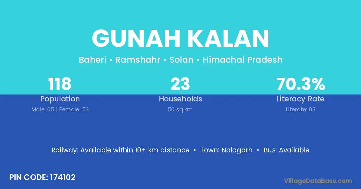 Nalagarh is the nearest town to Gunah Kalan village for major economic activities