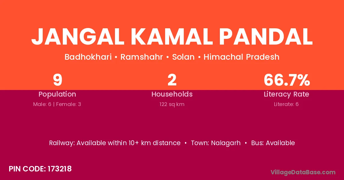 Jangal Kamal Pandal village has a total population of 9 people, of which 6 are males and 3 are females.