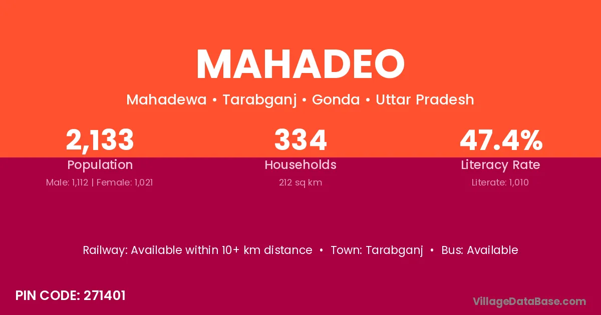 Mahadeo village has a total population of 114 people, of which 58 are males and 56 are females.