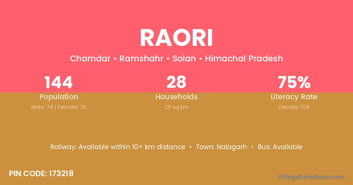 Nalagarh is the nearest town to Raori village for major economic activities
