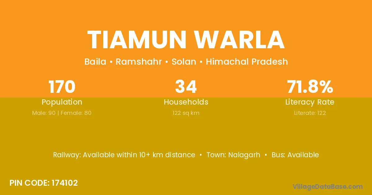 Nalagarh is the nearest town to Tiamun Warla village for major economic activities