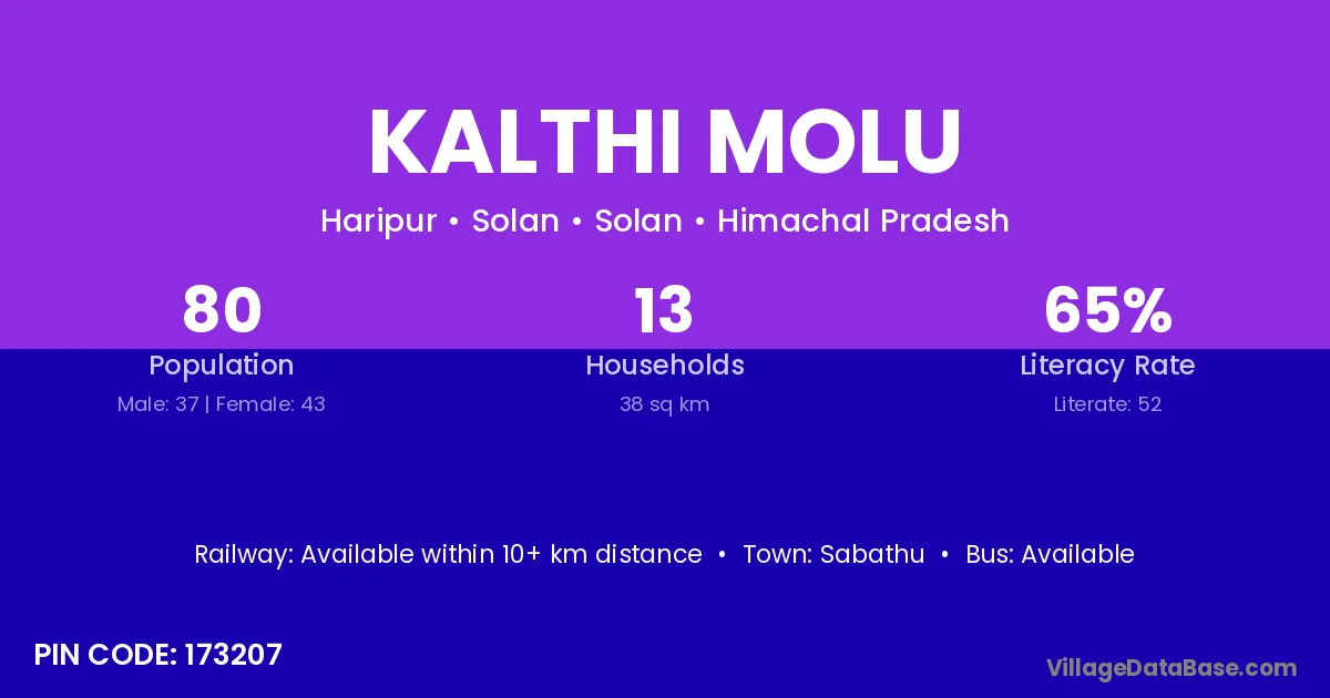 Sabathu is the nearest town to Kalthi Molu village for major economic activities