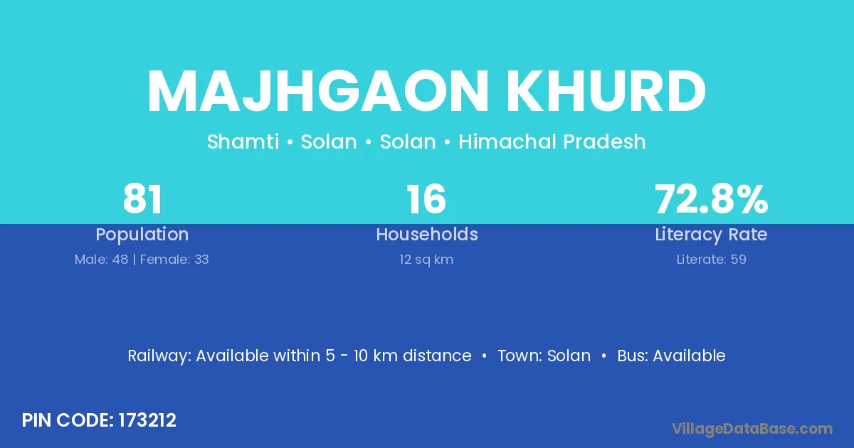 Solan is the nearest town to Majhgaon Khurd village for major economic activities