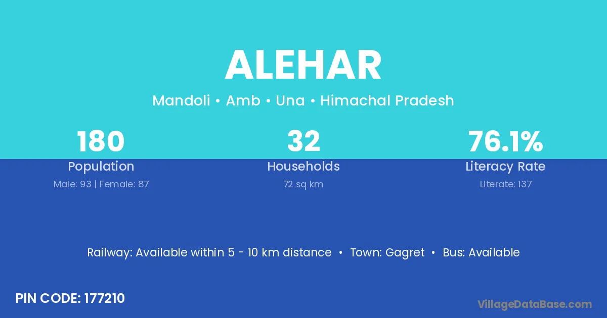 According to Census 2011 information, the village code of Alehar village is 177210.
