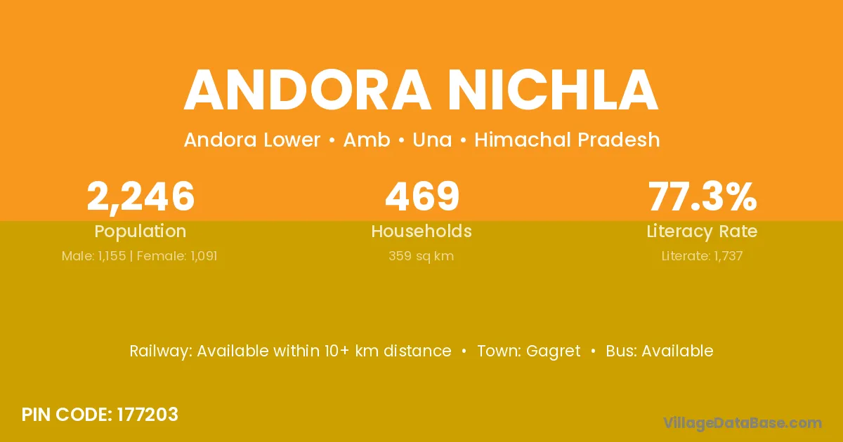 Andora Nichla village is located in the Amb Tehsil of the Una district in Himachal Pradesh .