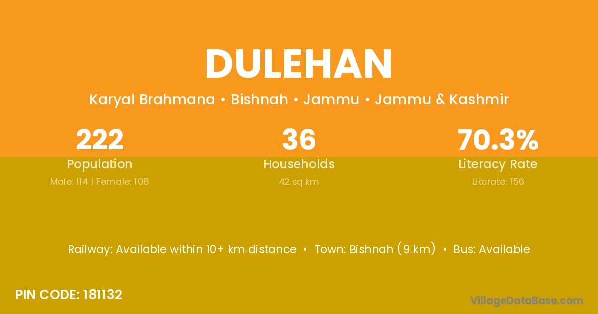 The literacy rate of Dulehan village is 75.00%. Male literacy stands at 85.71% and female literacy at 66.67%.