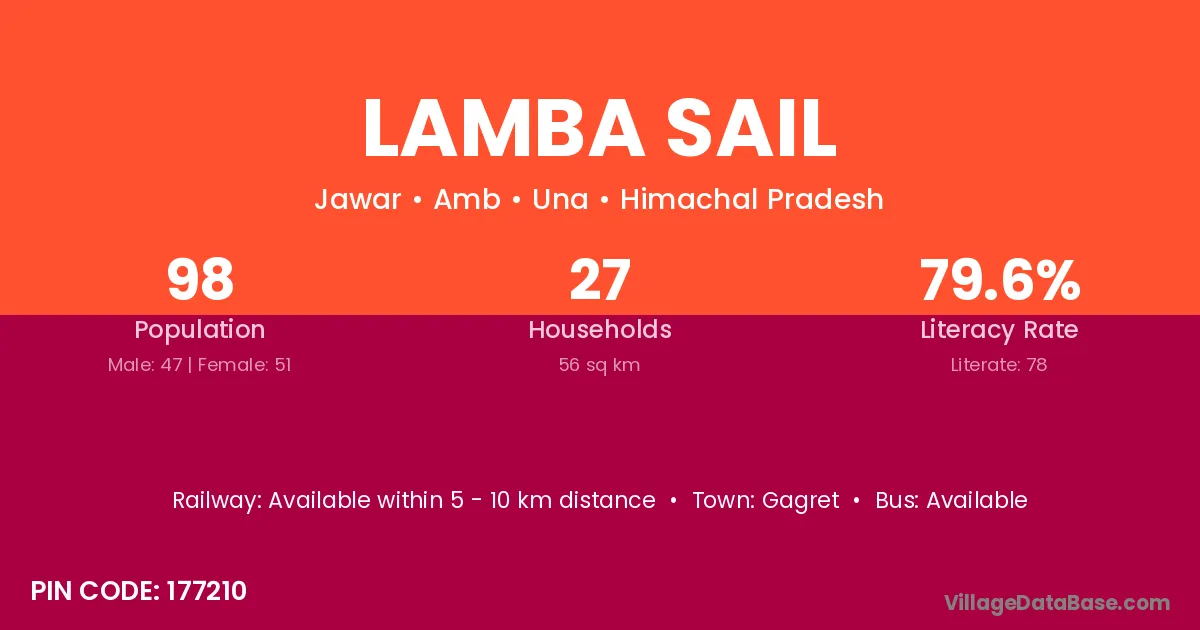 According to Census 2011 information, the village code of Lamba Sail village is 177210.