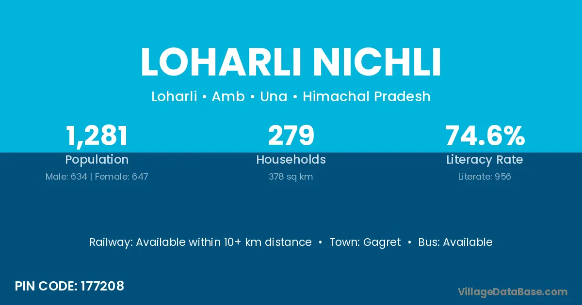 Loharli Nichli village has a total population of 1,281 people, of which 634 are males and 647 are females.