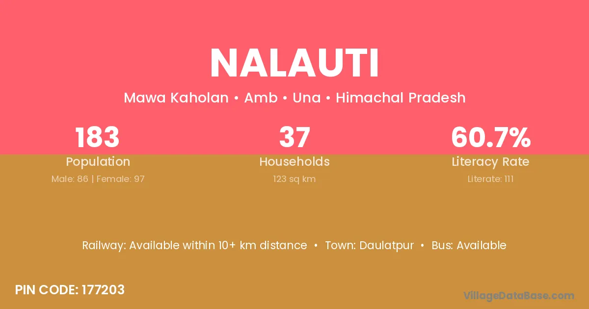 Nalauti village has a total population of 183 people, of which 86 are males and 97 are females.