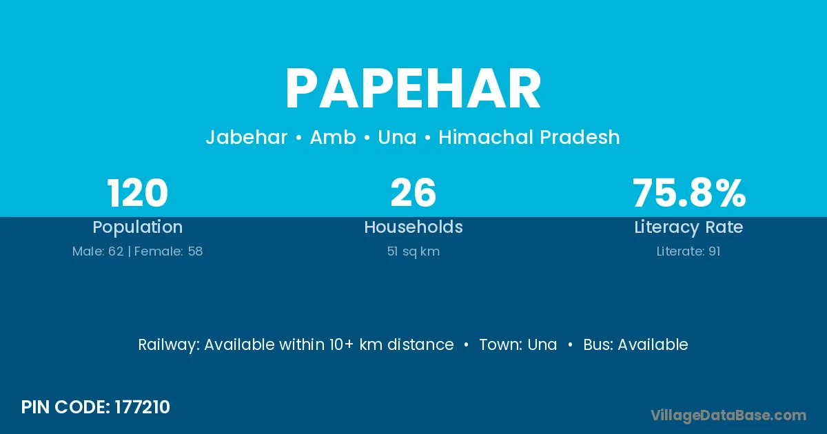 Papehar village has a total population of 120 people, of which 62 are males and 58 are females.