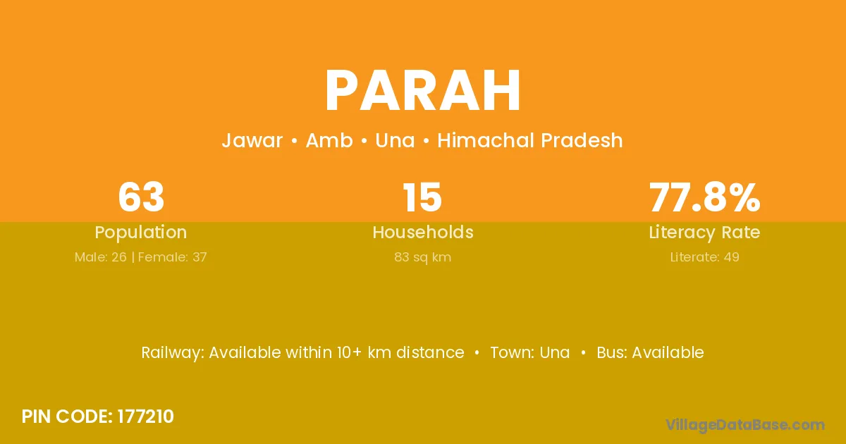 Parah village has a total population of 63 people, of which 26 are males and 37 are females.
