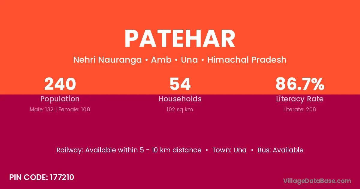 Patehar village has a total population of 240 people, of which 132 are males and 108 are females.