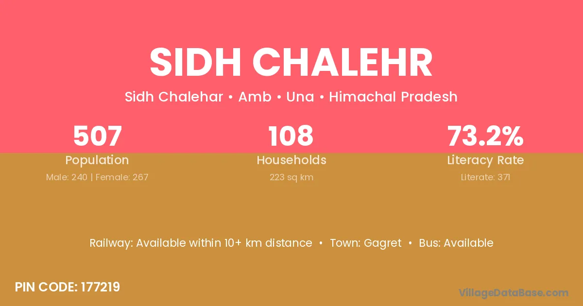 Sidh Chalehr village has a total population of 507 people, of which 240 are males and 267 are females.